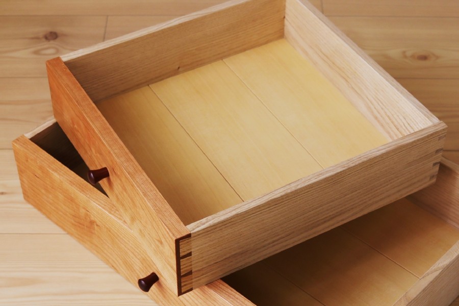 丁寧につくった木組みの引出しは滑らかに動きます。また、引出しの底板にも無垢材を用いました。