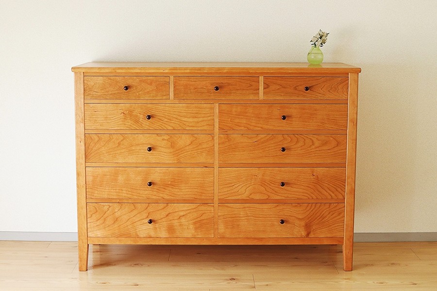 材種:チェリー、(つまみ:ローズウッド、引出内部:クリ、スプルース)